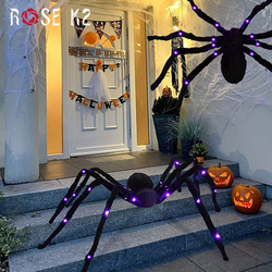 Araña LED púrpura de 4 pies, gigante falso, Halloween exterior de Decoración de casa, arañas espeluznantes peludas negras de 125cm para fiestas embrujadas
