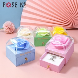 Rosa eterna preservada para el día de la madre de San Valentín, Rosa en caja de acrílico, rosas preservadas con amor, collar, conjunto de regalo